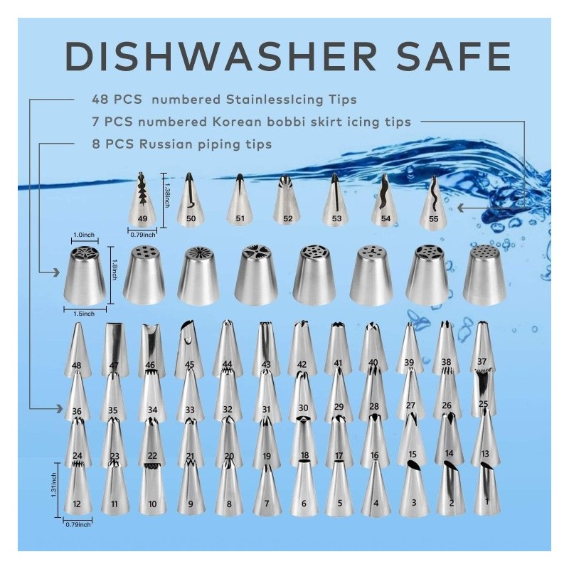 · Τρεις ατάπτορες για μύτες κορνέ εκ των οποίων ο ένας μπορεί να χρησιμοποιηθούν ταυτόχρονα τρεις σακούλες και δύο ιμάντες για κλείσιμο της σακούλας
