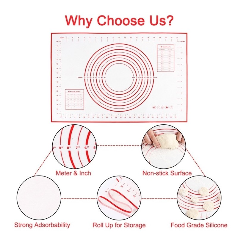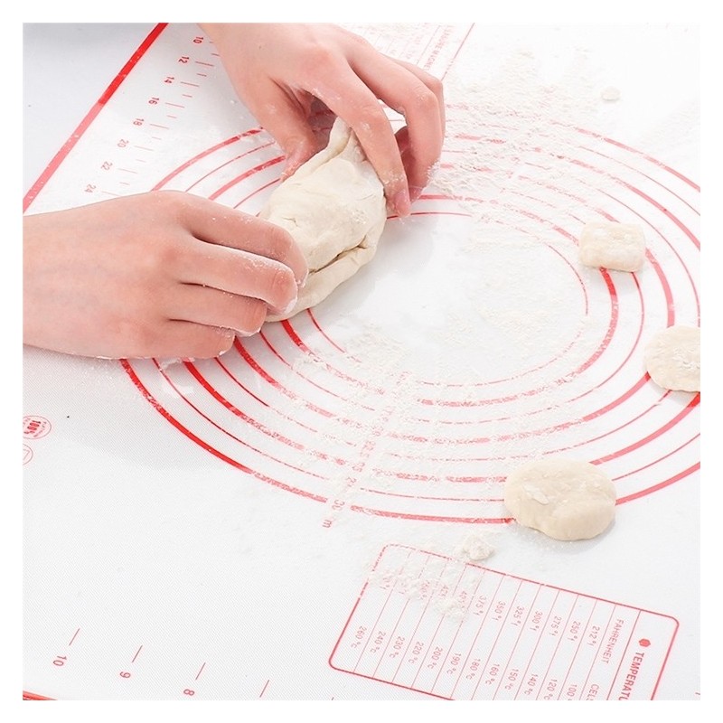 Ανακαλύψτε την εξαιρετική επιφάνεια σιλικόνης 60*60 cm με επικάλυψη τεφλόν Με αντοχή σε θερμοκρασίες από -30°C έως 230°C, είναι ιδανική για να ζυμώσεις ζύμη για πίτσες η άλλες παρασκευές ενώ παραλληλα χάρη στην αντικολλητική της επιφάνεια μπορείς να στρώσεις πάνω ζεστή καραμέλα ή υγρή σοκολάτα, είτε φτιάξεις διακοσμητικά από ζαχαρόπαστα για δημιουργία γλυκών αριστουργημάτων χάρη στον εκτυπωμένο χάρακα που διαθέτει μπορείτε να υπολογίσει ακριβώς τις διαστάσεις για τέλειο αποτελεσμα επίσης λόγω της μεγάλης αντοχής σε θερμοκρασία ή ψήxος μπορεί να τοποθετηθεί τε στο φούρνο είτε στην κατάψυξη